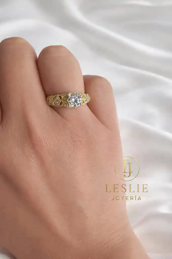 Anillo de compromiso con hermoso cristal y micro circones laminado en oro 14k talla 8