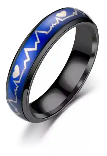 ¿Qué es un anillo del humor? Un anillo del humor es un anillo hecho de elementos termocromáticos, como el cristal líquido. El anillo cambia de color según la temperatura corporal de la persona que lo lleva puesto, y se considera un indicador del estado emocional. Material: Acero inoxidable. Talla: 7US (14CL) Peso aprox: 25.7 g Modelos disponibles: Sin Figuras, tallas de la 6US (12CL) hasta la 9US (18,5CL) Con Figuras (Latidos), tallas de la 6US (12CL) hasta la 9US (18,5CL) (Se envía con bella caja de regalo)