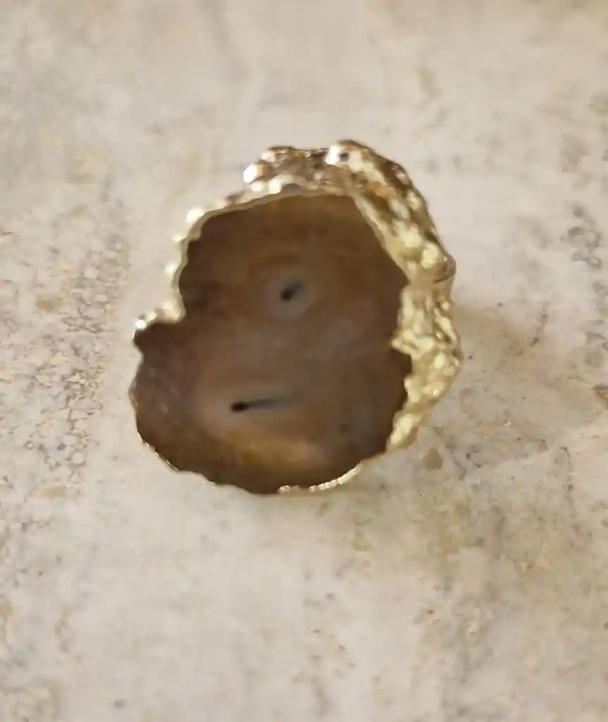 Hermoso anillo fantasía ajustable dorado con piedra café.
