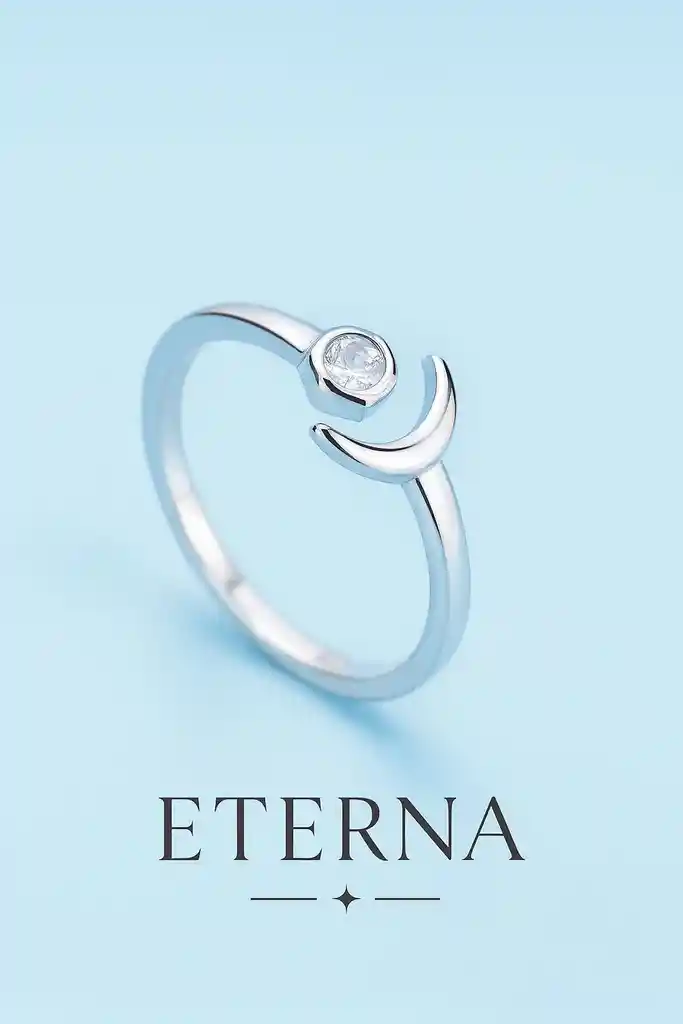 Anillo ajustable en plata con diseño de luna y piedra brillante. Minimalista, elegante y adaptable a cualquier talla