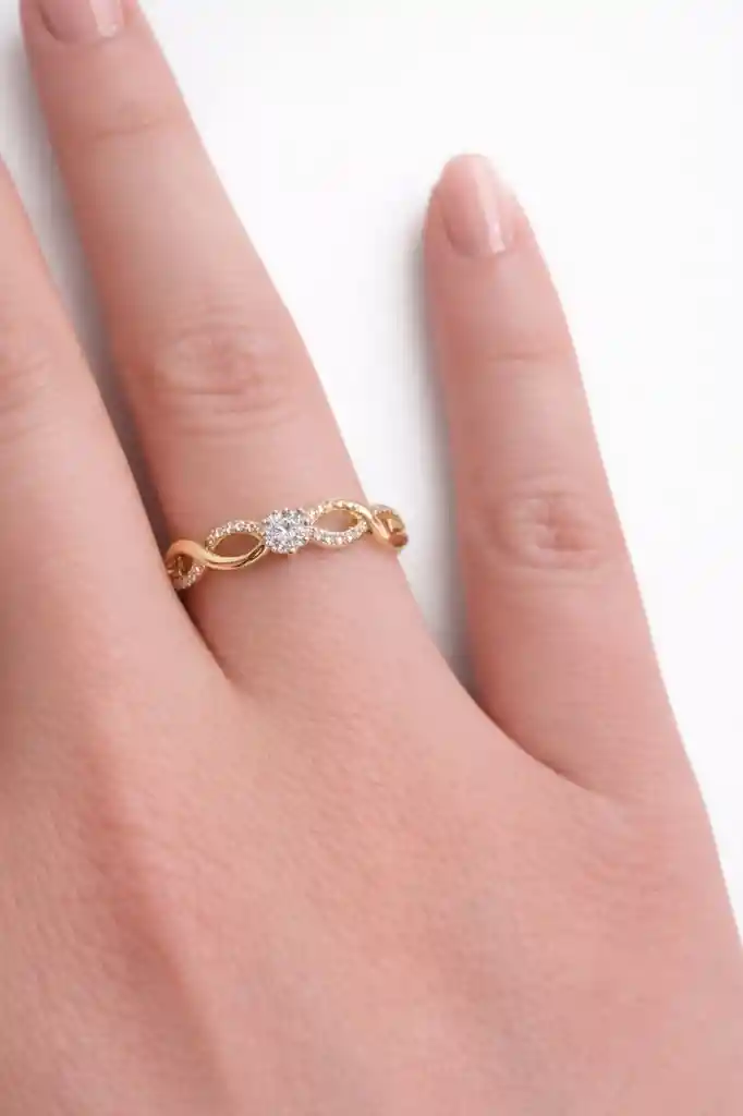 Anillo elegante diseño con cristal y micro circones laminado en oro de 18k talla 10.