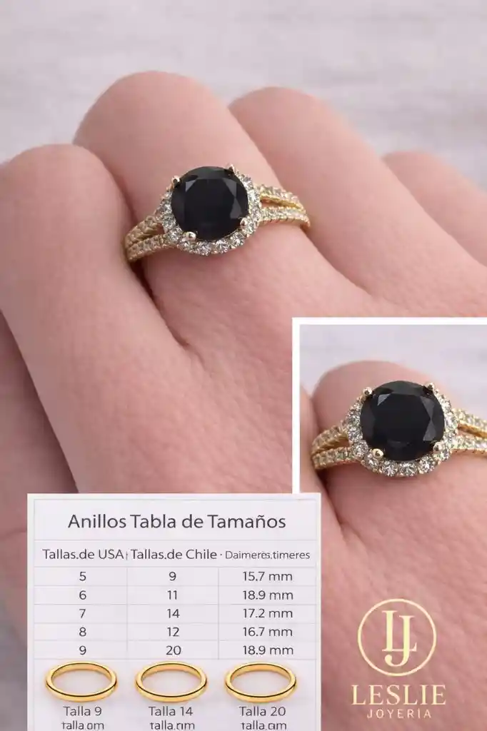 Anillo piedra negra con micro circones laminado en oro 14k (Talla 9)