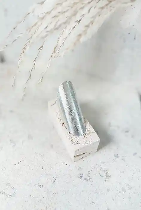 Anillo de plata con textura, hecho a mano por orfebres chilenos y que se destaca por su elegante forma alargada y su acabado artesanal. La superficie texturizada refleja la dedicación y el detalle en el trabajo, haciéndolo una pieza única que combina la sofisticación del diseño contemporáneo con la tradición de la orfebrería local. Su forma estilizada lo convierte en un accesorio moderno y atemporal, perfecto para darle un toque especial a cualquier conjunto.