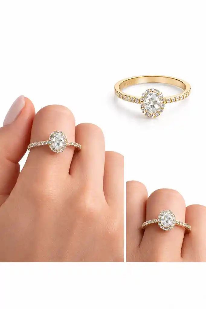 Anillos solitario con preciosos micro circones y cristales laminado en oro de 14k.