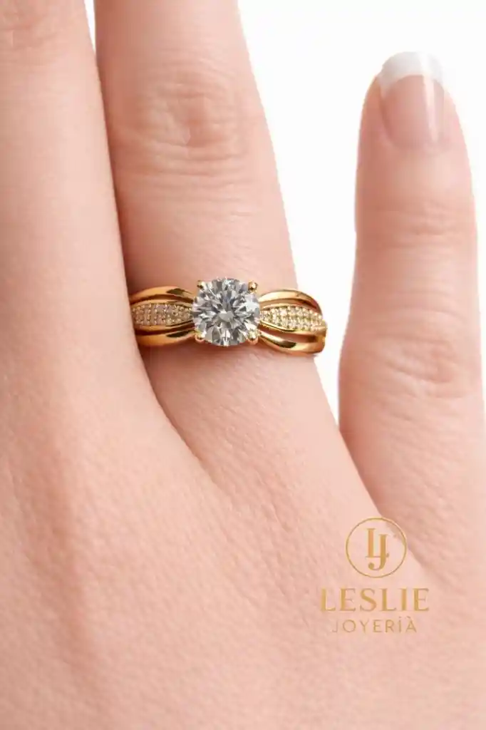 Anillo tipo solitario con diseño cristal y micro circones laminado en oro de 18k talla 8.