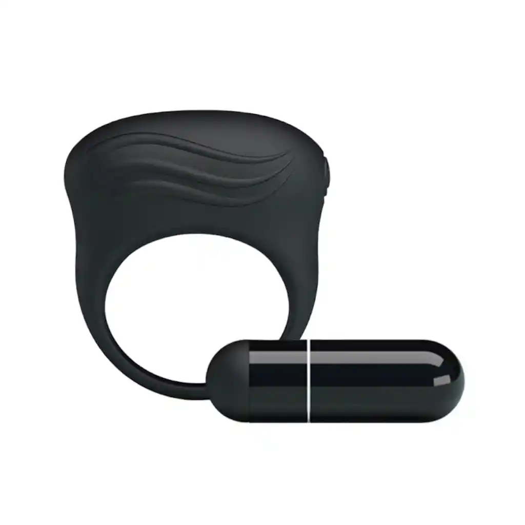 Bertram es un anillo vibrador elaborado en silicona de alta calidad y durabilidad, con suaves protuberancias con formas sinuosas en la zona de estimulación clitorial. Tiene una vibración intensa y silenciosa, entregando comodidad, orgasmos intensos y una erección duradera. El anillo Bertram se acomoda a la base del pene logrando prolongar la erección por más tiempo y mucho más firme (ya que aumenta considerablemente la irrigación sanguínea del pene) y cuenta con una bala de intensa vibración que llegará a estimular cualquier zona erógena que quieras alcanzar. Características: Color: Negro. Material: Silicona ABS. Marca: Pretty Love. Tipo de motor: 3 Baterías LR41 incluidas. Incluye 3 baterías adicionales. (6 baterías en total). Resistente al agua (no sumergible). Reutilizable. Medidas: Longitud: 5,1 cm. Diámetro interno: 3 cm. (flexible). Observaciones: Lavar antes y después de usar con agua tibia y jabón neutro. No exponer a altas temperaturas ni humedad.