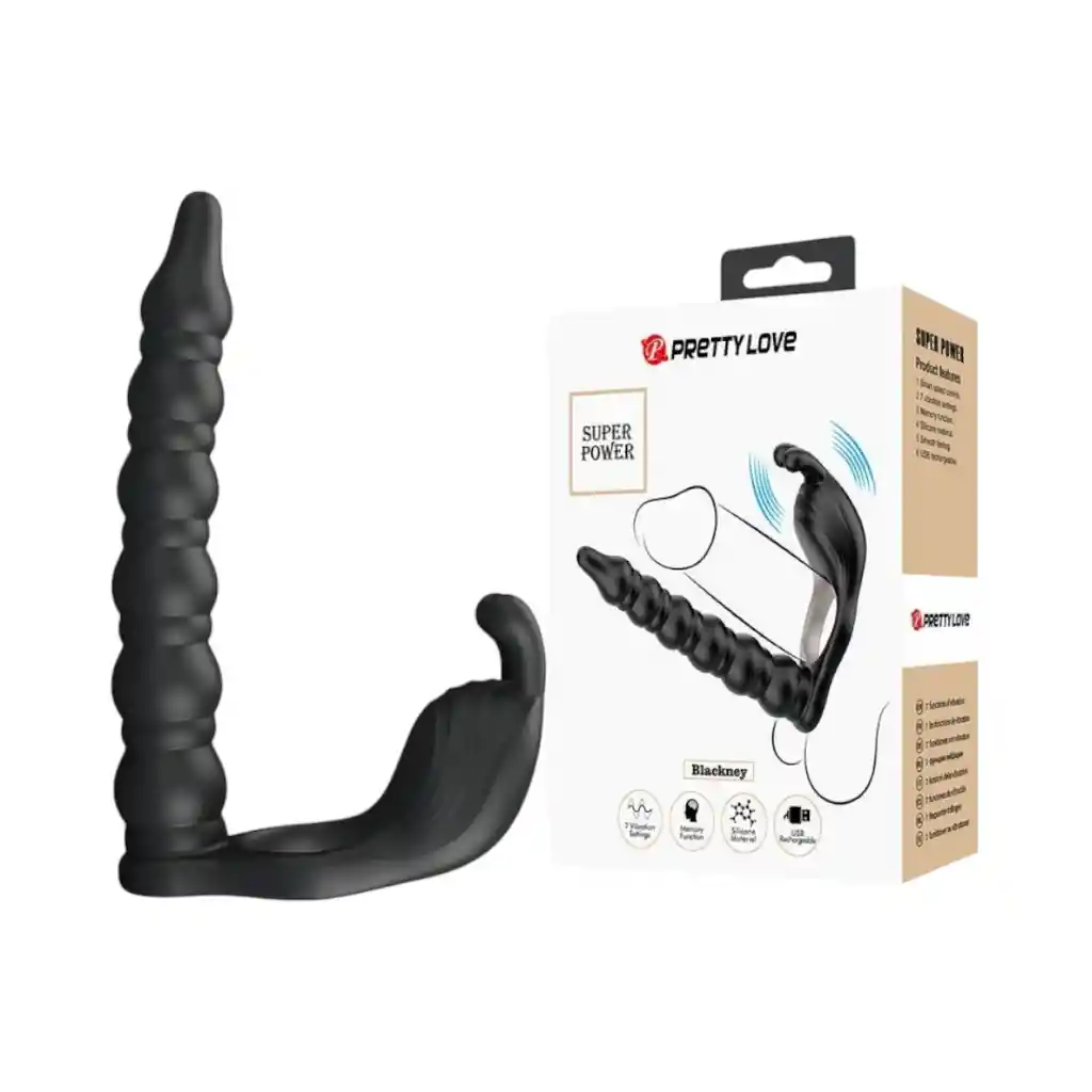 Anillo vibrador tipo conejito y estimulador anal flexible con diseño de esferas: este anillo vibrador lleva la experiencia en pareja a un nuevo nivel. Con 7 funciones de vibración, su diseño está pensado para intensificar las sensaciones, proporcionando una erección más firme y prolongada, mientras el conejito vibra suavemente en el clítoris y el estimulador flexible recorre el recto. Perfecto para experimentar la doble penetración y disfrutar de un placer compartido. Características: Color: Negro. Material: Silicona + ABS suave y segura para la piel. Anillo de doble penetración con vibración. Recargable vía USB (cable incluido). Diseño flexible y con esferas para la estimulación anal. Vibrador tipo conejito para estimular el clítoris. 7 funciones de vibración intensas. Función de memoria inteligente. Libre de látex y ftalatos. Fácil de limpiar. Medidas: Largo total: 14,8 cm. Alto total: 9,2 cm. Diámetro estimulador anal (parte más ancha): 2 cm.