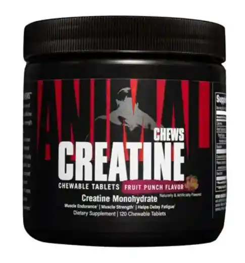 Animal Creatine Chews te ofrece el poder del monohidrato de creatina en deliciosas tabletas masticables. Cada porción contiene 5 g de monohidrato de creatina y sal marina para una mejor absorción y un mayor bombeo. Con tres sabores para elegir, Animal Creatine Chews es la forma práctica de desarrollar músculo, mejorar la resistencia, favorecer la recuperación muscular y ganar fuerza. Sin agua, sin batidoras, sin desorden. 5 g de monohidrato de creatina por porción Ayuda a desarrollar músculos, rendimiento, fuerza y cognición. La solución perfecta para llevar y llevar para estilos de vida activos El monohidrato de creatina es uno de los suplementos de nutrición deportiva más investigados y con razón. Animal Creatine Chews toma este suplemento de eficacia comprobada durante décadas y lo ofrece en una deliciosa y práctica tableta masticable. Formulada para aumentar la fuerza, mejorar la resistencia y potenciar la función cerebral, Animal Creatine Chews es una forma práctica de apoyar tus objetivos de entrenamiento y rendimiento, independientemente de cómo te lleve el día.