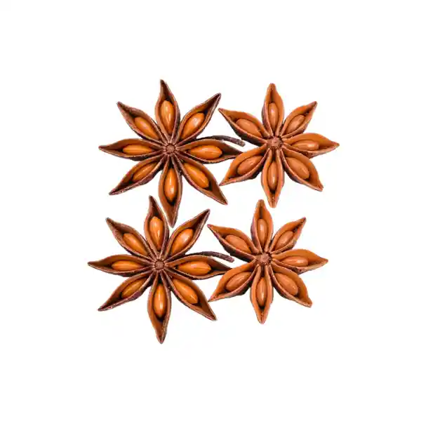 El Anís estrellado es una especia que se asemeja al anís pero entrega un toque un poco más dulce. Utilizado en platos asiáticos y carnes. Es altamente digestivo por lo que añadido a las preparaciones además de darle un maravilloso aroma y delicado sabor hará las comidas con una digestión más ligera. Muy usado dentro de la repostería y licores.