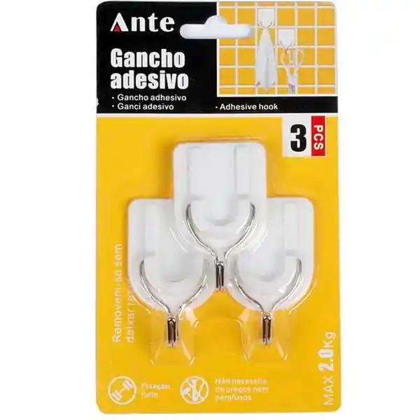 Set Contiene 3 Unidades. Práctico Ganchos Adhesivos de 4.6 x 7.4 x 2.8 cm. Soportan Hasta 2 Kg. Aprox. No Ocupan Clavos ni Tornillos.