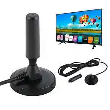 Antena para TV digital HD, Esta antena es ideal para tu televisor HD Fácil de instalar. La puede instalar en cualquier lugar metálico y va a quedar adherida con firmeza. Cable de aprox. 2 metros de largo, capta señal en 360°. - Frecuencia: UHF 470-862 MHz - Ganancia: 4 Db - Impedancia de entrada: 75 Ohm - V.S.W.R: UHF 1.5:1 - Angulo horizontal: 360° - Angulo horizontal: 20° - Conector coaxial (Conector F) - Longitud de cable: 4.3 metros - Peso: 500 gramos - Medidas antena: 113x20x20 mm - Medidas base: 77x77x10 mm
