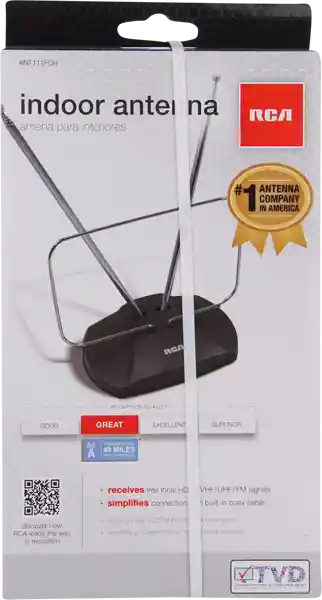 Con la antena Rca goza de la mejor programación de televisión abierta con alta calidad y gran rango de captación de señal en un diseño infaliblemente clásico. Soporta HDTV para video y audio en alta definición. Incorpora suaves almohadillas protectoras para mantener intacta la superficie de tus muebles. Cuenta con un cable coaxial compatible con la mayoría de las pantallas disponibles en el mercado.