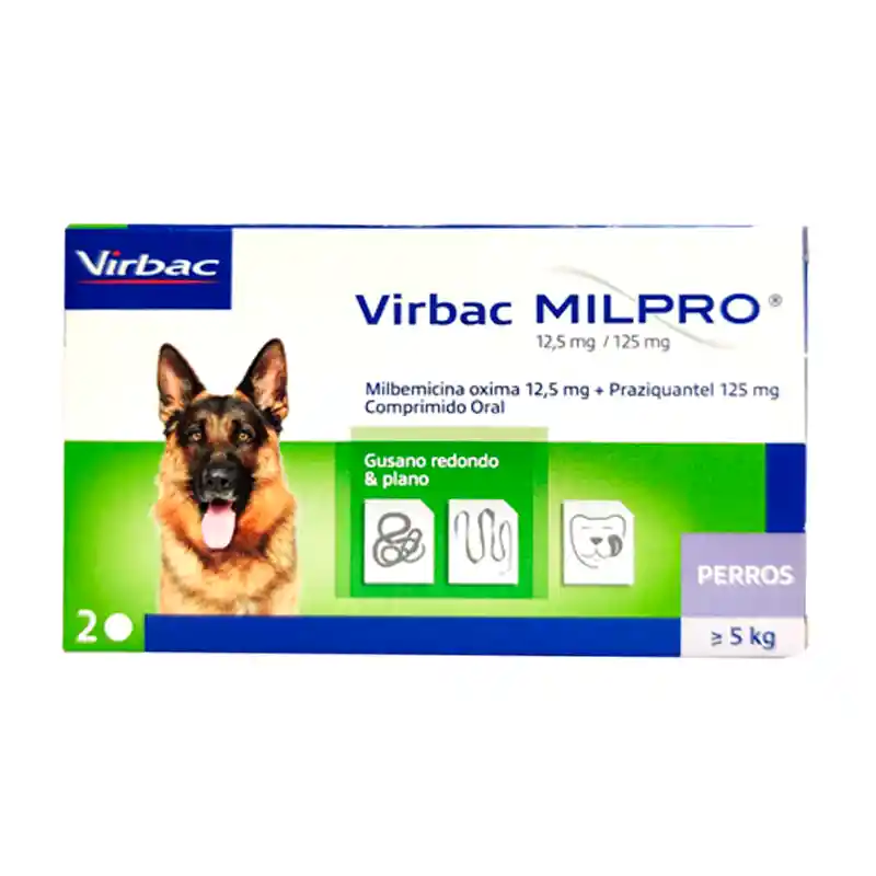 El antiparasitario interno Milpro 12.5mg/125mg Perro 5kg (2 comprimidos) esta indicado para el tratamiento de ...Ver más