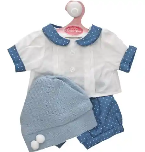 Nuestros bebés han renovado este año el armario de ropita de Muñecas Antonio Juan y no les falta detalle. Pensando en acompañar a los más pequeños en sus juegos y fomentar su imaginación, tenemos un bonito surtido de trajes de muñecas para 42 cm. en el que se incluyen vestidos, trajes y pijamas surtidos ( cada uno se vende por separado)
