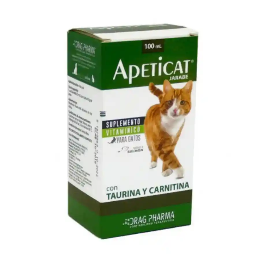 APETICAT es un suplemento formulado especialmente para gatos a base de Taurina y Carnitina, complementado con aminoácidos, vitaminas y calcio. Su fórmula aumenta las ganas de comer de su mascota, actuando como bioenergizante y mejorador de las funciones y mejorador de las funciones metabólicas del organismo. La Taurina es un aminoácido que los gatos sólo sintetizan en cantidades muy pequeñas, no suficiente para satisfacer en su totalidad las necesidades fisiológicas del animal, su presencia en cantidad adecuada es esencial en la dieta para mantener la salud de su mascota. Vía oral. 1 cucharadita (5 mL) por cada 4 Kg de peso.