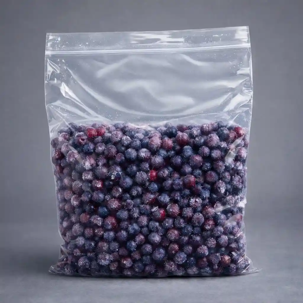 Arándano congelado IQF. Imagen referencial: El empaque del producto puede variar según el stock disponible, manteniendo siempre la calidad que caracteriza a nuestros productos.
