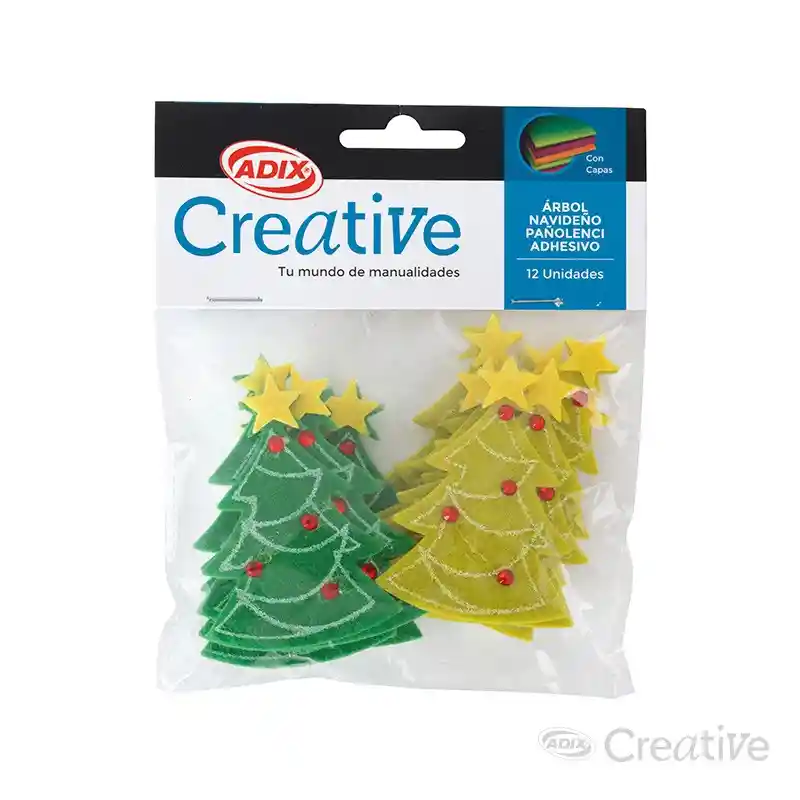 Árbol de Pañolenci Adhesivo. Incluye 12 unidades. Árbol de Pañolenci adhesivo Contiene 12 unidades aprox. Ideales para trabajos manuales y decoración. Recomendado desde los 3 años