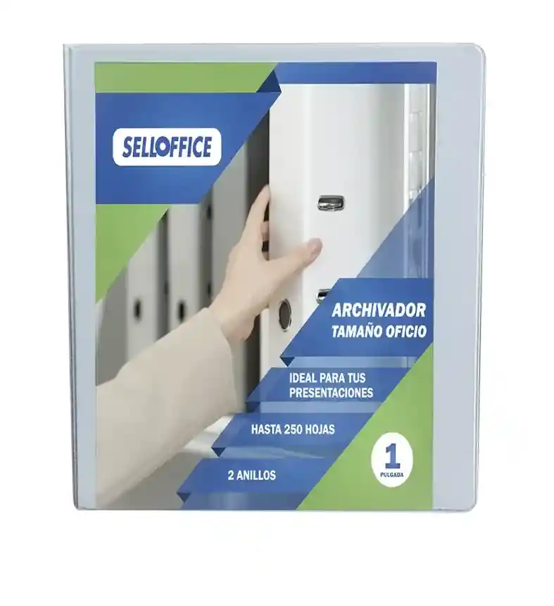 Archivador de plastico con tapa dura con 2 anillos en su interior, tiene capacidad de 250 hojas aproximadamente. Contiene compartimientos en portada y lomo para insertar grafica informativa o corporativa.