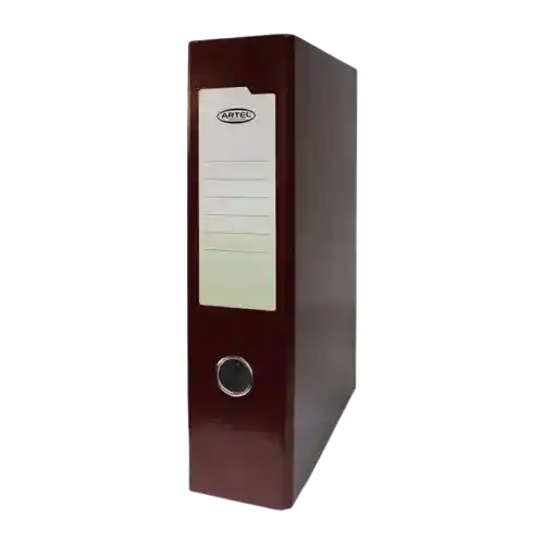 Archivador color burdeo. Tamaño Carta. Sistema metálico para archivar las hojas. Este sistema se desmonta a través de una ranuras adheridas al archivador,.