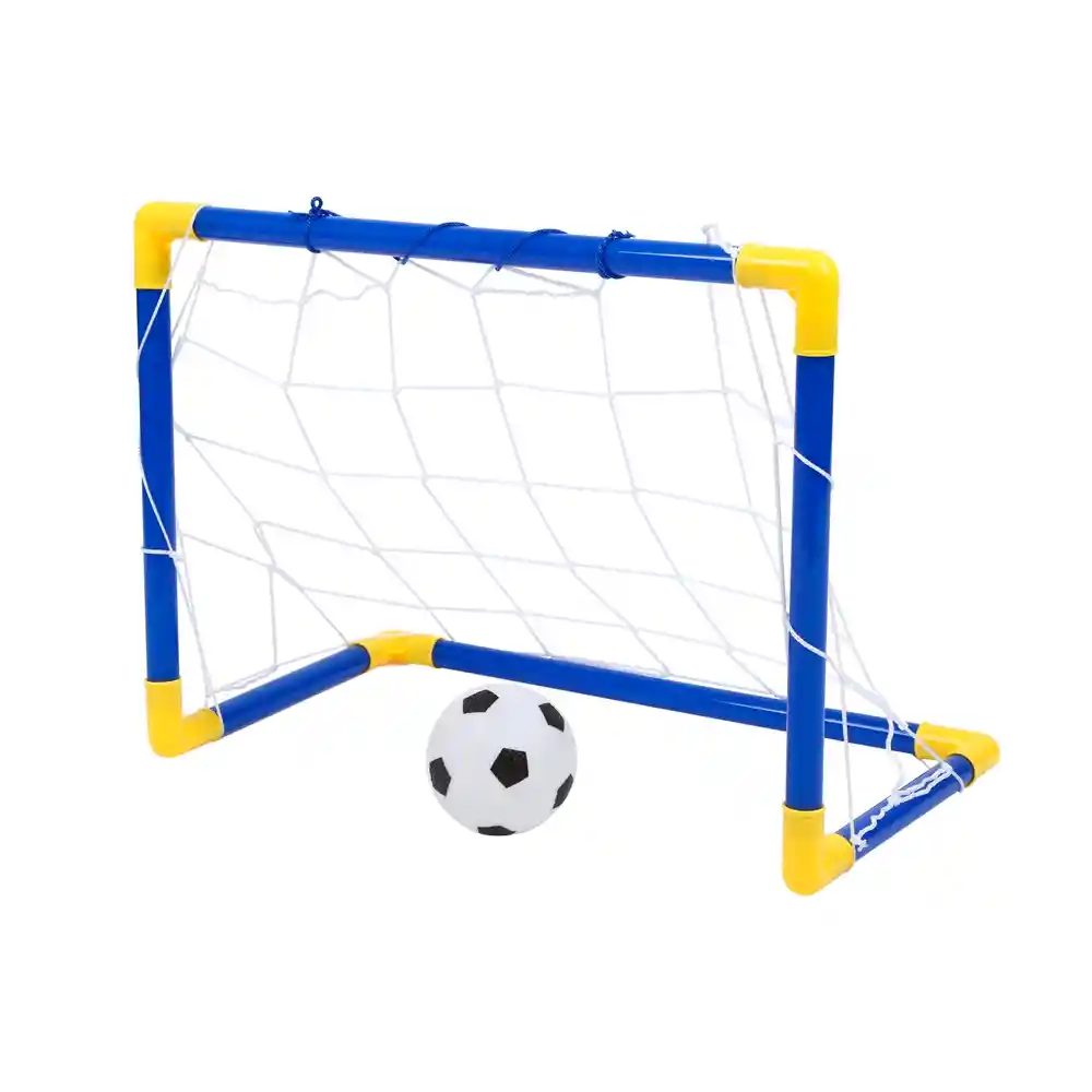 Especificaciones: Material: Plástico Color: Amarillo+ Azul (Según Disponibilidad) Dimensiones: 83 cm x 110 cm x 68 cm (aprox) Contiene: 01 Porteria de Futbol/ 01 Balón Inflable / 01 Red / 01 Bombín Características: Fácil de instalar y desinstalar Ligero y portátil, puede usarlo en interiores o exteriores Adecuado para que los niños puedan jugar y simular el Fútbol