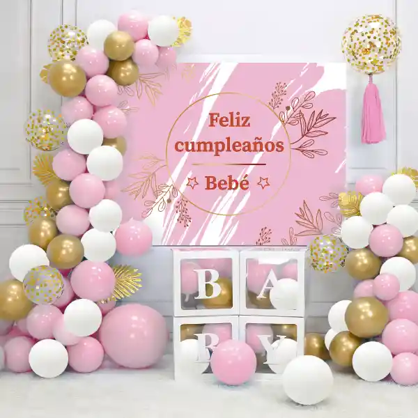 ARCO GLOBOS ORGANICOS BABY SHOWER ROSADO 57 PIEZAS