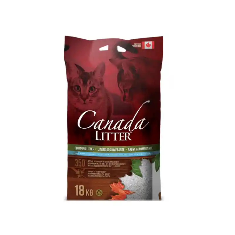 Arena sanitaria súper aglomerante. Absorción instantánea de líquidos y olores. Suave olor de talco de bebe. Fabricada en Canadá