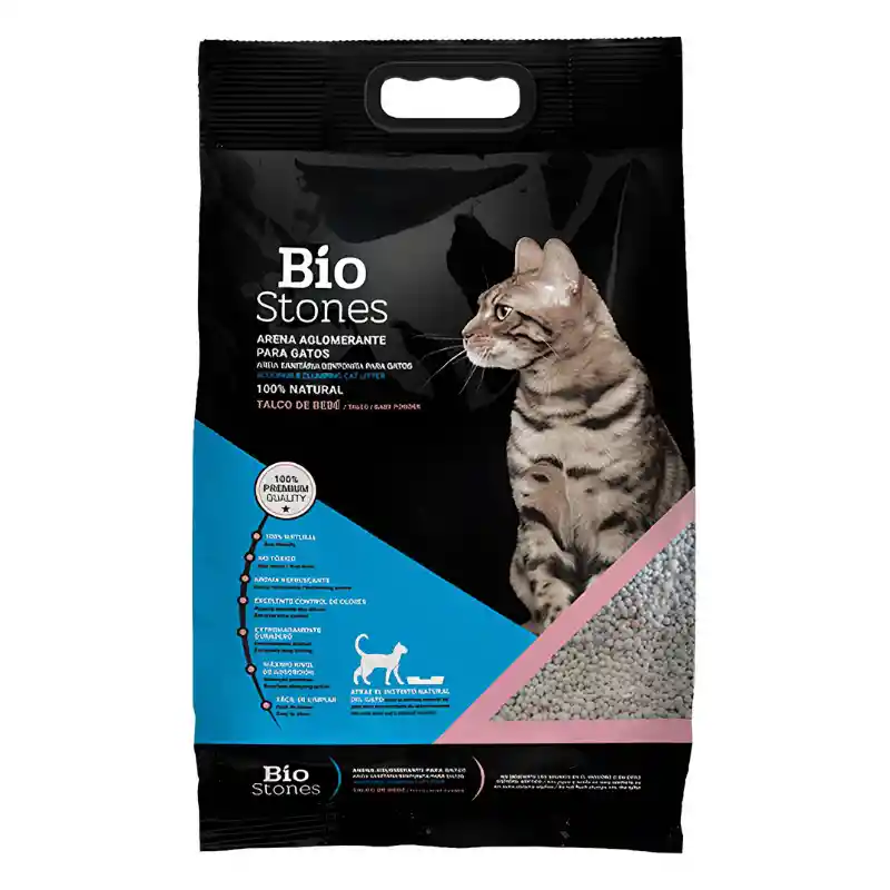 Descubre la revolucionaria arena sanitaria Bio Stone, elaborada con bentonita sódica, un componente natural reconocido por su extraordinaria capacidad de absorción y control de olores. La fórmula única de Bio Stone no solo proporciona una solución eficaz para el cuidado de tu gato, sino que también se distingue por ser completamente biodegradable y amigable con el medio ambiente.