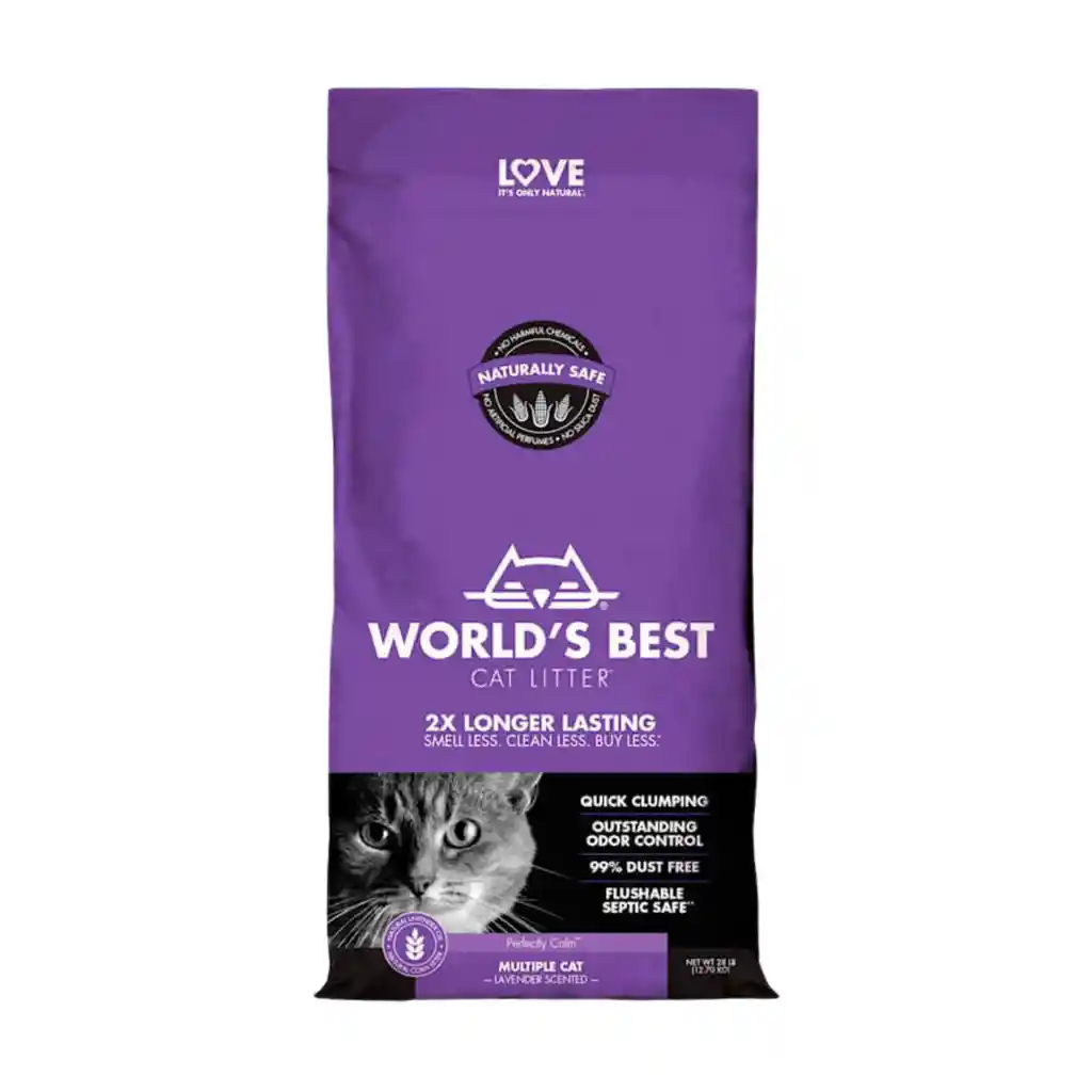 La Arena Sanitaria World’s Best Cat Litter (WBCL) Multiple Cat Lavanda está hecha con aceite de lavanda perfumado 100% totalmente natural, esta arena súper aglomerante es ideal para múltiples hogares de gatos y padres de mascotas que prefieren una arena perfumada. Por lo tanto, puede salvar su hogar del mal olor a amoníaco.