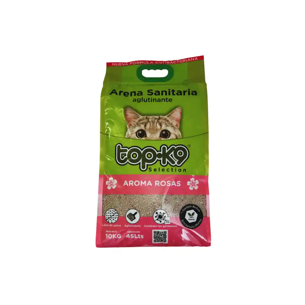 Top K9 es una arena sanitaria mineral 100% natural, que absorbe en 8 segundos aproximadamente la orina de su gato transformándola en una bolita fácil de retirar. Aglutina en 8 segundos. Elimina el 99% del olor del arenero. Libre de polvo.