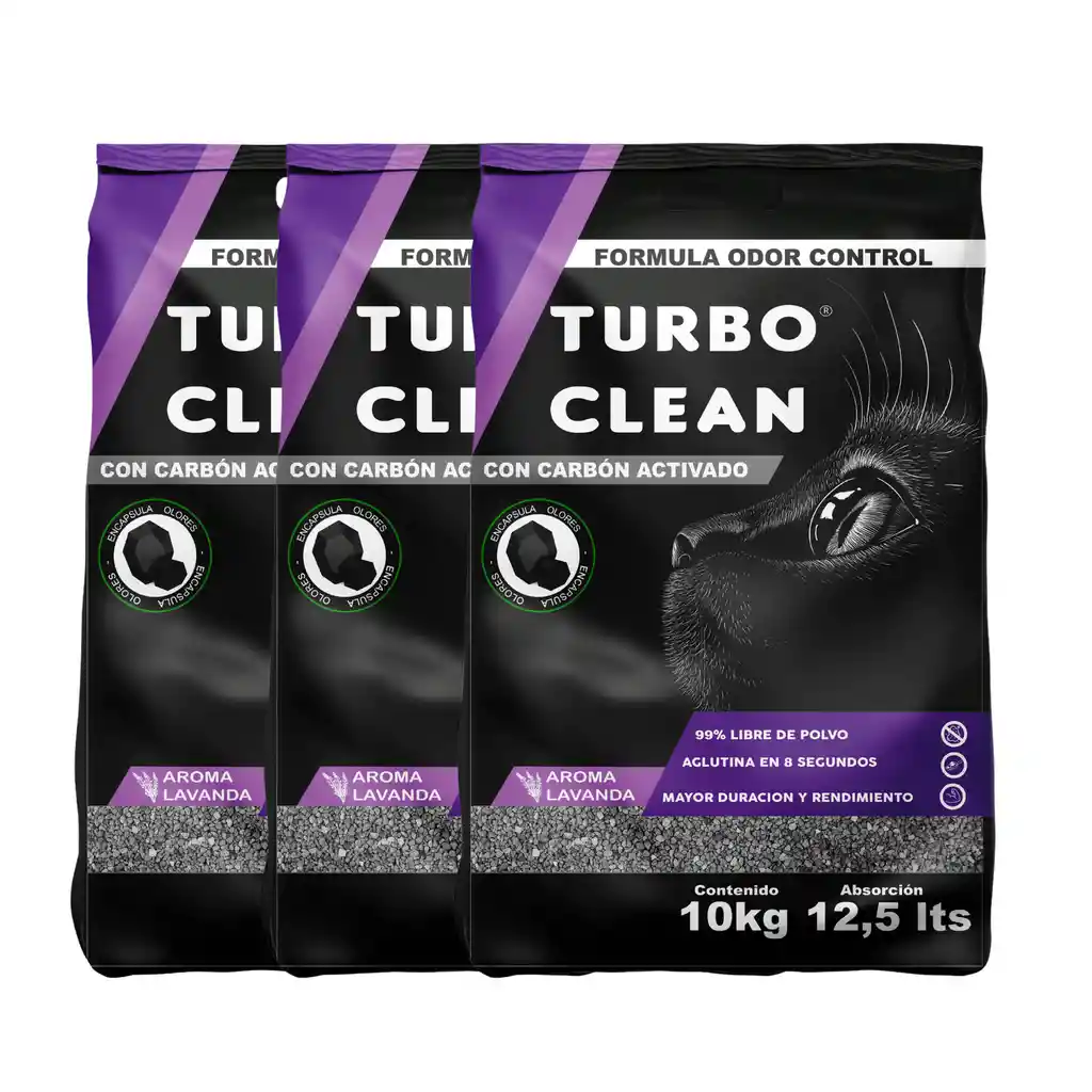 Nueva Arena Sanitaria Turbo Clean Odour Control con Carbón Activo 20 Kg Lavanda Características: Arena sanitaria para gatos aglutinante 100% bentonita con carbón activo que inhibe los malos olores del arenero de su gato. Tiene forma de bolitas o pelotitas que cuidan las patitas de tu gato