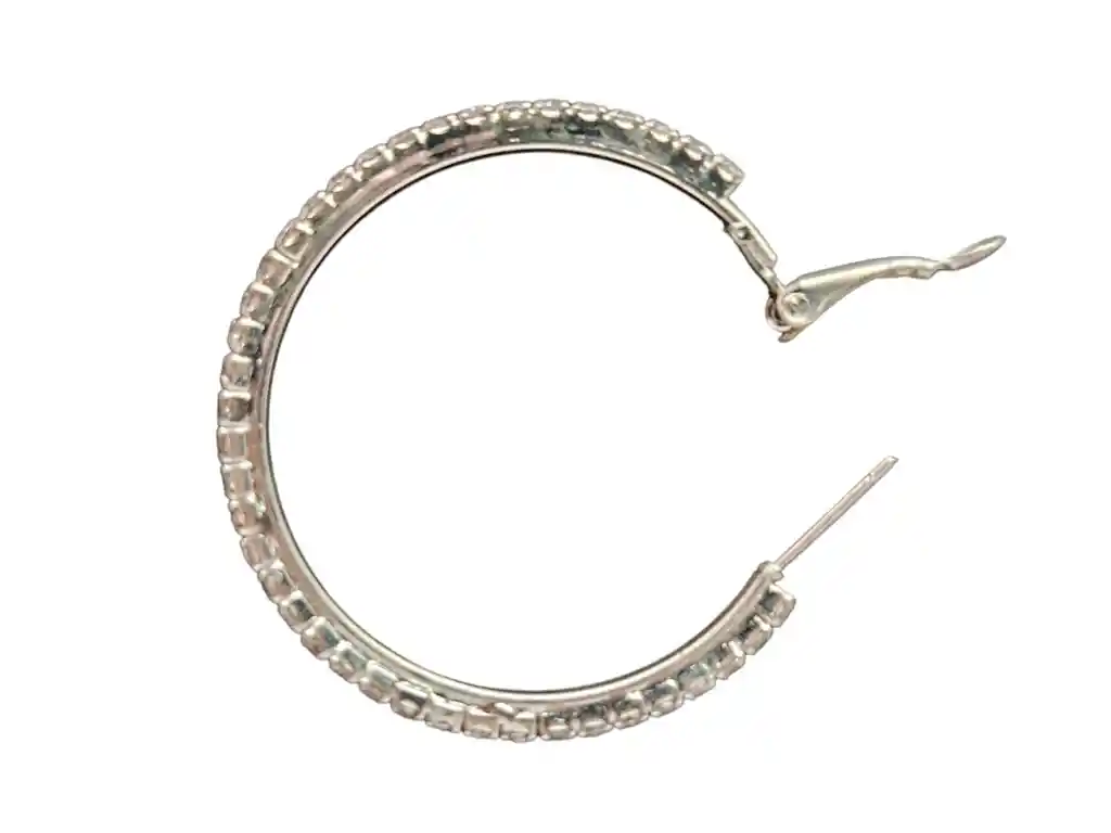 Arete de argolla bañada en plata, de tamaño mediano, con brillos finamente encrustados que aportan luminosidad y elegancia. Su diseño equilibrado y sofisticado realza el look con un toque moderno y refinado, ideal para usar tanto de día como de noche. Una pieza versátil que destaca por su brillo sutil y acabado pulido.