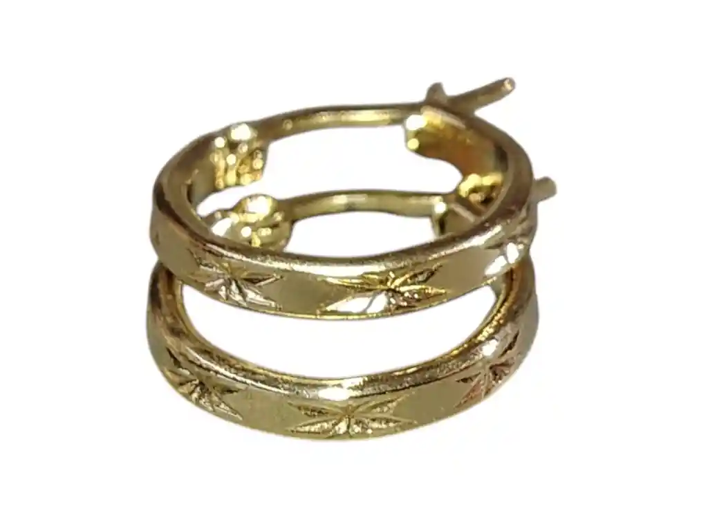 Arete de argolla pequeña bañado en oro, con acabado liso y pulido que resalta su brillo natural. Un diseño minimalista y elegante, ideal para quienes prefieren accesorios clásicos y versátiles que aportan sofisticación y estilo a cualquier look, perfecto para el uso diario o para combinar con otras piezas.