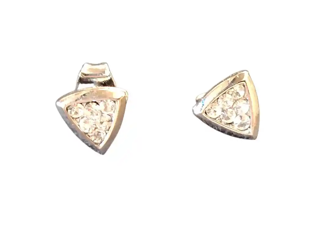 Un diseño pequeño en tamaño, pero grande en intención. Estos aretes bañados en plata en forma triangular con brillos incrustados reflejan luz con cada movimiento, aportando un toque moderno y sofisticado sin perder delicadeza. Perfectos para quienes aman los detalles sutiles que elevan cualquier look, desde el día a día hasta ocasiones especiales. Un básico elegante que combina estilo, luz y personalidad en una sola pieza.