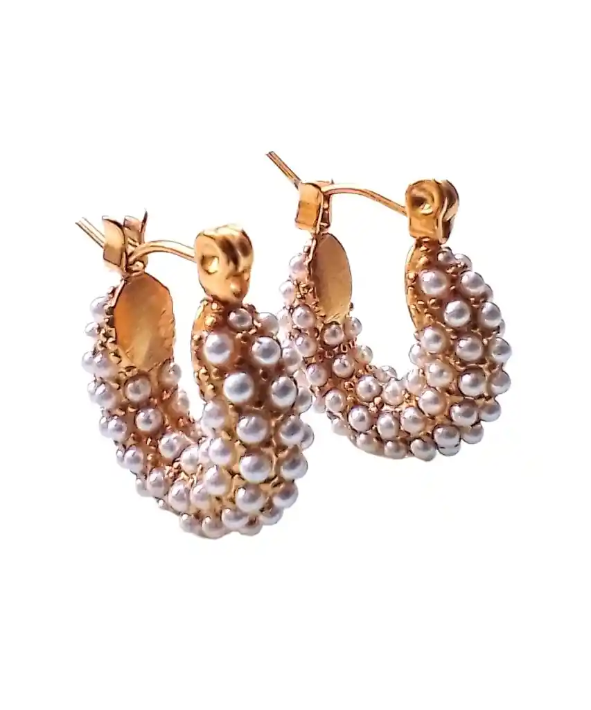 La magnifica combinación de las perlas con el chapado en oro que poseen estas argollas te aseguran cerrar tu outfit con el mejor de los looks. Te aseguramos que no pasaras desapercibida con este accesorio. Material: Chapado en oro 18k y perlas Medidas: Diametro interno 6 mm + Diametro externo 15 cm + Ancho 5mm + Largo 19mm Peso aprox: 12gr (Se envia en bella presentacion para regalo) Ofrecemos joyas únicas que cuentan historias especiales. Contamos con una amplia variedad de joyas de metales preciosos, gemas y arte adaptados a los gustos de nuestros clientes. Además, disponemos de auténticas piedras preciosas de la mejor calidad. Descubre nuestros productos en plata, oro, oro rosa y acero quirúrgico 316L, perfectos para cualquier ocasión. Encuentra el regalo u obsequio perfecto para cumpleaños, aniversarios, San Valentín, día de las madres, día del padre, graduaciones, viajeros, bodas y más. ¡Regalos originales y obsequios para todo tipo de fanáticos y amantes de la vida! Una joya o accesorio es el obsequio perfecto pues siempre añade un toque de elegancia a tu atuendo y look.