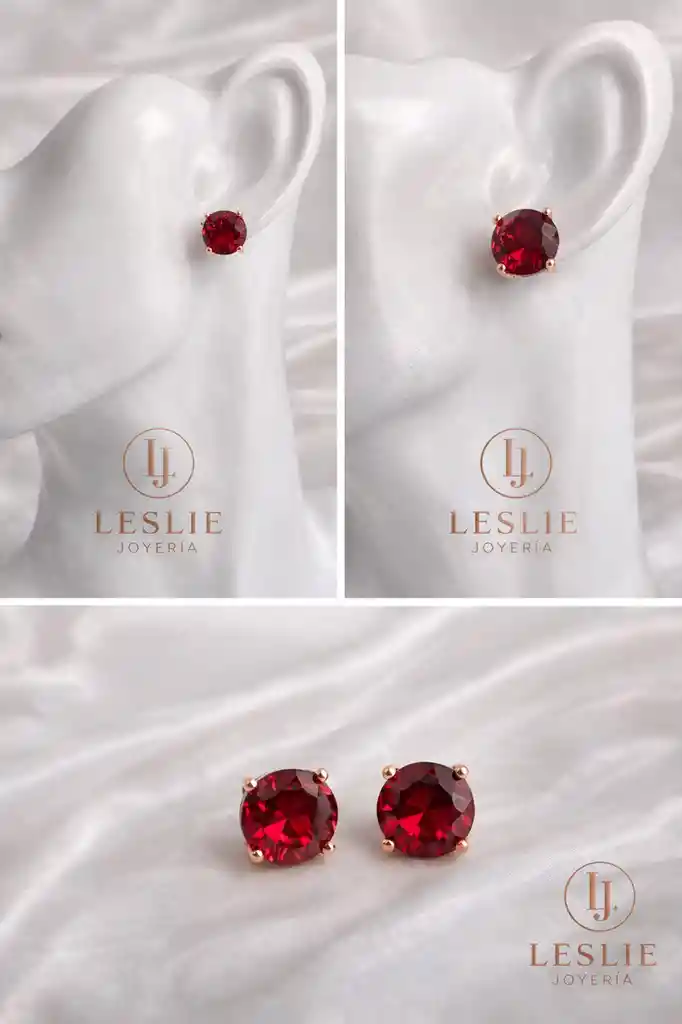 Aretes punto de luz laminadas en oro de 18k color rose crital rojo.