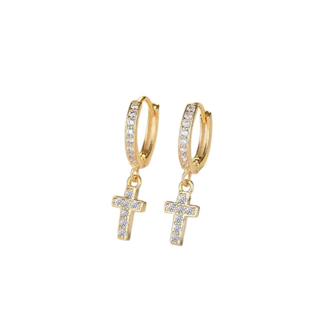 Sumérgete en la elegancia y estilo con nuestras argollas de plata bañada en oro con una hermosa cruz adornada con circones brillantes. Perfectas para dar un toque cómodo a cualquier look y simbolizar tu fe con un toque de lujo. ¡Haz una declaración de belleza y exclusividad con nuestras argollas de plata cruz!Material, Plata 925 con circones Medidas: Argolla 10 mm diámetro / Cruz 10 mm alto