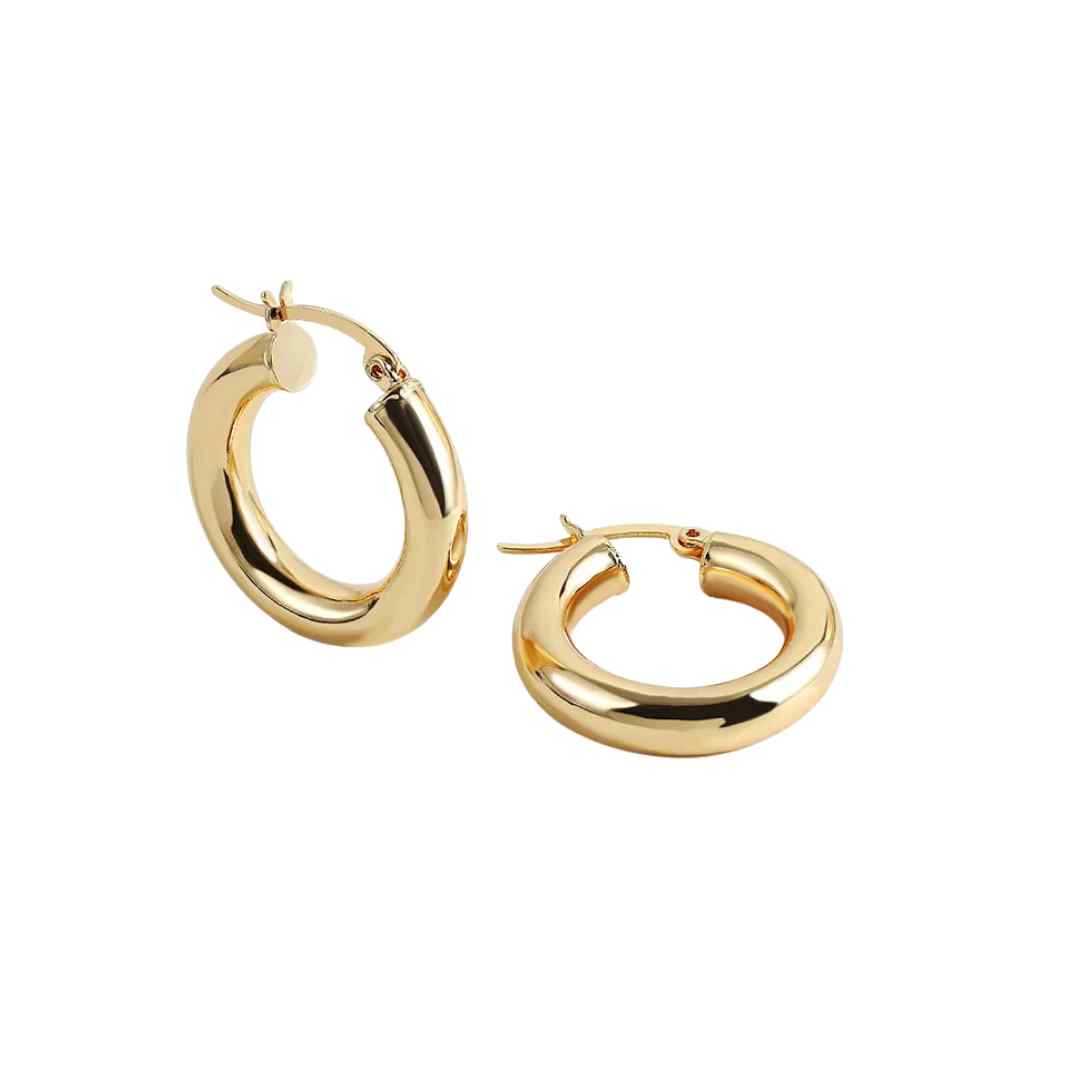 ¡Luce elegante y a la moda con nuestros aros bijoux Julia! Estos hermosos argollas de bijutería fina en color dorado te harán brillar en cualquier ocasión. Con estilo y sofisticación, serán el complemento perfecto para tus looks diarios. Medida, 18 mm Material Acero quirúrgico