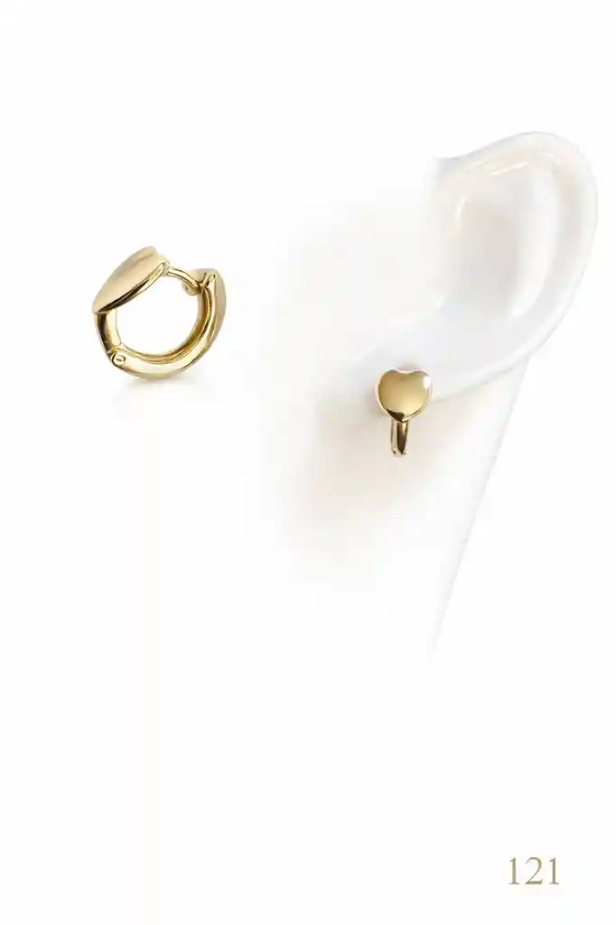 Argollas con corazón laminado en oro de 18k