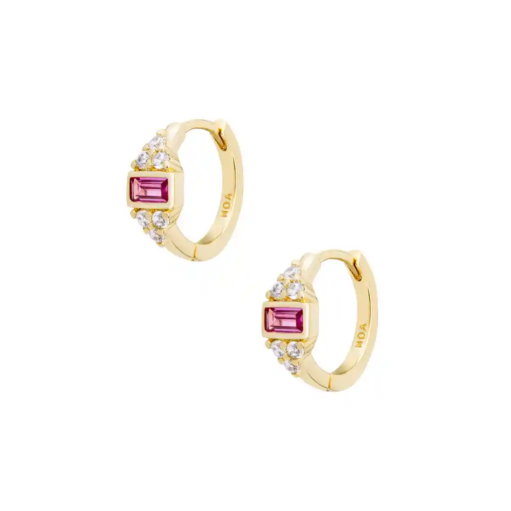 Las argollas Emi Pink son una hermosas argollas con un zircón rectangular de color rosado acompañado de brillos!, Son fabricados en baño de oro de 14k y como todas nuestras joyas, son libres de níquel e hipoalergénicos. Material: Baño de oro de 14k, libre de níquel. Diámetro: 14 mm. ¡Todas nuestras joyas vienen con un packaging especial que te enamorará!