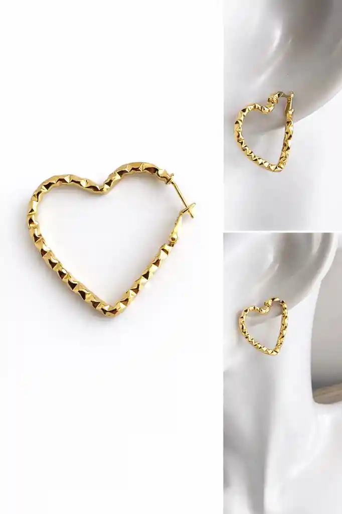 Argollas en forma de corazón laminado en oro de 14k mide aprox. 3,5 cm