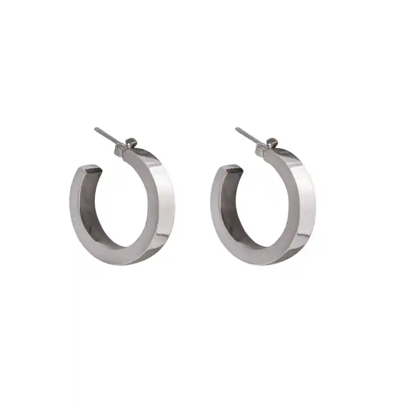 Par de argollas cuadradas, elaboradas en plata 925, libre de níquel. Medidas: Diámetro: 16mm Grosor: 2,5mm Cambios: previa notificación dentro de las 24hrs después de recibido (sin uso y en perfecto estado)