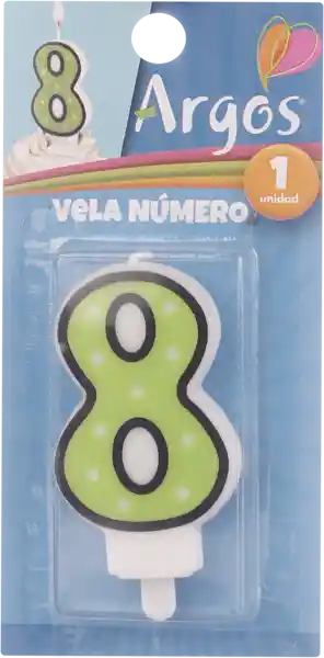 Es una hermosa vela con el número 8, el complemento perfecto para tu pastel de cumpleaños.