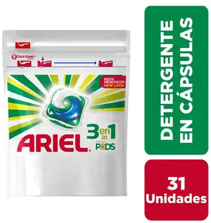 Contiene 31 Unidades. Ariel Power Pods es el Jabón Para Lavar la Ropa Que en Una Sola Cápsula Contiene Detergente Concentrado, Quitamanchas y Abrillantador Para Dejar tu Ropa Impecable en Cada Lavada