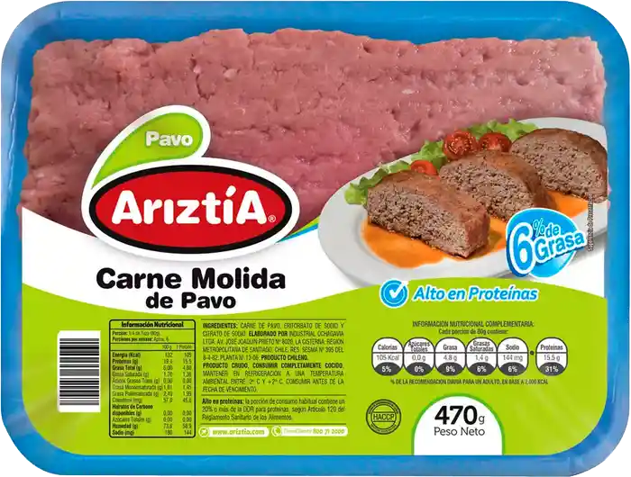 Carne Molida de Trutro de Pavo 6% Ariztía 470 g