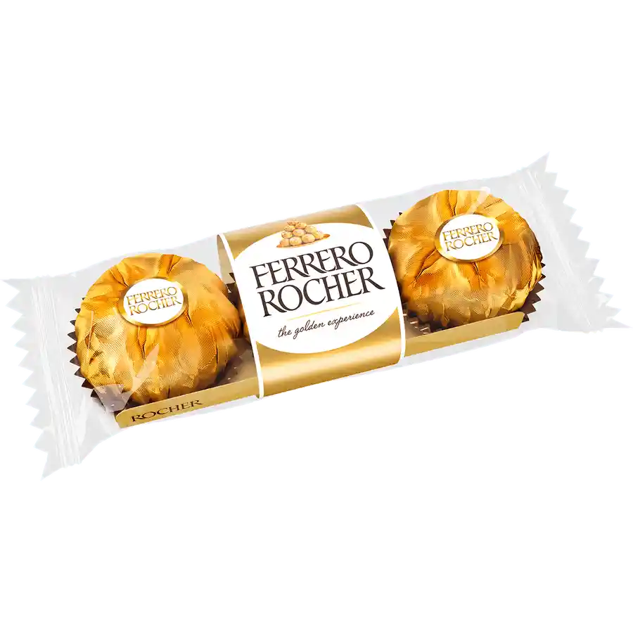 Paquete de 3 bombones de chocolate Ferrero Rocher. Agrégalo a tu carrito, junto con otros regalos, compleméntalo con un empaque, caja o bolsita y nosotros armamos tu regalo para que recibas todo junto creado especialmente por ti.