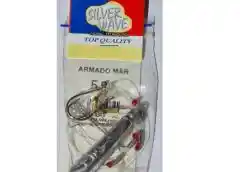 ARMADA MAR FONDO 2 ANZ 50grs / Armada para fondo de mar / Armada Corvinera / Marca SILVER WAVE / Modelo 50 gramos / Sobre con 1 armada / Armado consiste en: / dos Anzuelos garra de aguila con ojo y curvo / Anzuelo largo 4 cms, abertura 1,5 cms / dos rotores largo 5 cms / un destorcedor con snap #5, largo 4,5 cms, color bronce / un plomo lenguadero de 50 gramos, 8 cms / Armado con Nylon transparente grosor 0,50 mm / Fabricacion Chilena