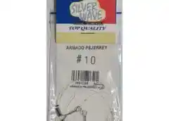 ARMADA PEJERREY # 10 / Armada para poca profundidad / Armada Pejerrey / Marca SILVER WAVE / Modelo dos Anzuelos y dos rotores cortos en 70 cms / Armada consiste en: / Anzuelos Mustad Crystal 221C para pejerrey / Anzuelos medida numero 10 / Anzuelos largo 13 mm, pata corta / Anzuelos abertura punta 5 mm, punta clavadora / Anzuelos cabeza paleta / Anzuelo color nique / Anzuelo material alambre fino carbon steel / Rotor sobresale 20 mm / Rotor distancia entre ellos 500 mm (o 50 cms) / Rotor a anzuelo 200 mm (o 20 cms) / Nylon transparente / Nylon largo 700 mm (o 70 cms) / Nylon grosor 0,40 mm / Nylon puntas dos sin bucles / Sobre con 1 armada / Peso Anzuelos + rotores + nylon 1,5 gramos / Peso del sobre completo 4,5 grs / Fabricacion Chilena