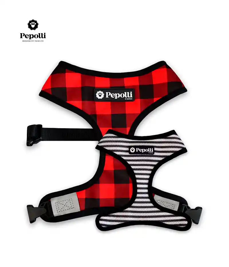 El arnés 2-EN-1 para perros está impreso con excelentes diseños en ambos lados, por lo que puedes usarlo por el lado que desees. Lo suave de los arnés impresiona por su alta calidad y su agradable comodidad de uso. Puede ajustarse en el área del estomago y, por lo tanto, es adecuado para muchos tamaños de perros. Materiales: • Tela Neopreno, secado rápido • Tela Air-Mesh, mas ventilación
