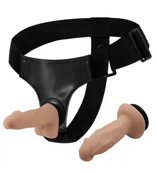 Arnés con dos dildos realísticos intercambiables (uno con testículos y otro sin testículos), de material super suave, muy cómodo y fácil de ajustar. Posee el espacio justo para insertar uno de los dos dildos, permitiendo que encajen perfectamente para una mayor comodidad al usar. Crea un efecto de succión que permite que no se mueva y quede firme. Características: Arnes con dos dildos intercambiables Color: Beige Material: ABS TPR Para inserción vaginal o anal MEDIDAS Dildo sin testículos Largo Total: 10 cms Diámetro: 3 cms Dildo con testículos Largo Total: 10.5 cms Diámetro: 3 cms RECOMENDACIONES Lavar con agua tibia y jabón neutro antes y después de usar Utilizar con lubricante a base de agua o híbrido Lavar en un lugar limpio y seco No guardar en contacto con otros juguetes