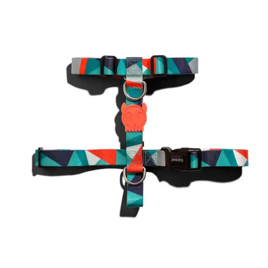 Zee.Dog H-Harness est aacute; fabricado en poli eacute;ster suave y resistente, cuenta con dos anillas en forma de D para la fijaci oacute;n de la correa, as podr aacute; elegir con cual se siente m aacute;s c oacute;modo paseando a su perro. Cuenta con broche de seguridad de 4 puntos. Arness en H, con mosqueton de seguridad, doble impresi oacute;n en colores. Tabla de medidas: Talla XS: Cuello 20-34cm Contorno 23-38cm Talla S: Cuello 24-38cm Contorno 42-69cm Talla M: Cuello 40-67cm Contorno 62-107cm Talla L: Cuello 40-67cm Contorno 62-107cm